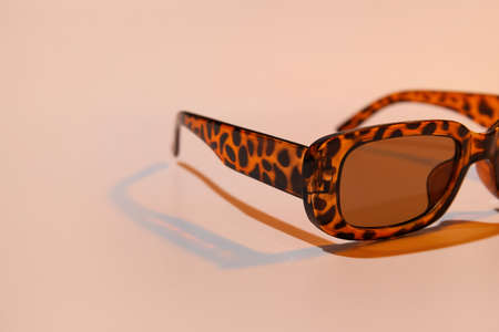 Stylish sunglasses on light background