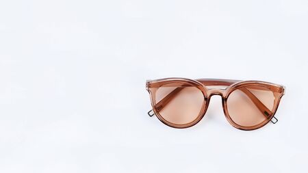Womens sunglasses isolated on white background, Womens trendy brown sunglasses. Fashion female Sunglasses. Summer fashion concept. Copyspace, nobody