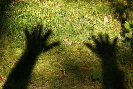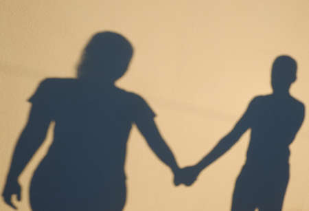 Photo of the shadow of a female and male figure. The man took the woman by the hand and steps forward.