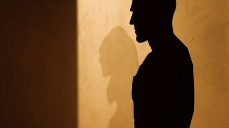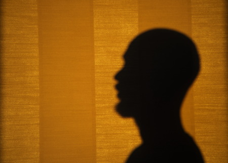 Self-portrait on the wall - a silhouette of a man cast on a wall by a yellow sunlight