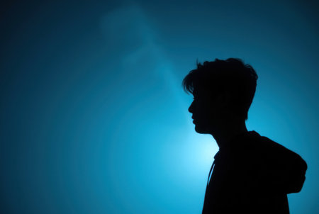 A solitary human silhouette against a vibrant blue background, evoking introspection.