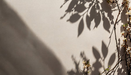 Shadows of leaves on a cream wall, minimalist nature concept