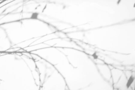 Abstract gray shadow background of natural leaves tree branch falling on white wall texture for background and wallpaper, black and white monochrome tone
