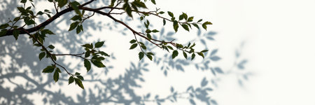 A serene image of delicate leaf shadows gently projected onto a light-colored wall, creating a tranquil and natural ambiance.