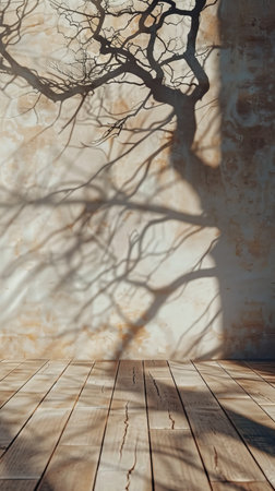 This image showcases the delicate interplay of branch shadows on a smooth surface, creating a visually striking contrast that embodies tranquility and artistic elegance.