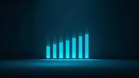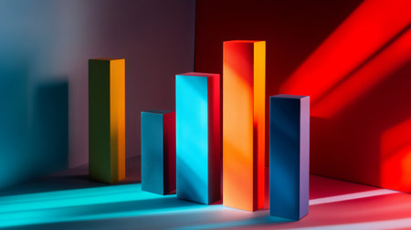 An abstract representation of growth featuring colorful bars illuminated by soft light. Ideal for marketing, business, and technology themes.