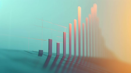 This stylish minimalist abstract bar graph features pastel colors and soft shadows, making it a perfect visual for modern business presentations or artistic decor.