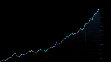 A detailed blue line graph against a black background illustrating a steady increase in data trends. The upward arrow highlights positive growth and performance metrics.