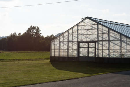 Beautiful view of a greenhouse in the sun. Sunlight through the glass.