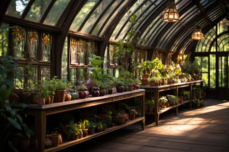 stock photo of growing plants in greenhouse garden photography Generated AI