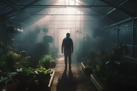 Thriving Man greenhouse plant. Organic adult. Generate Ai