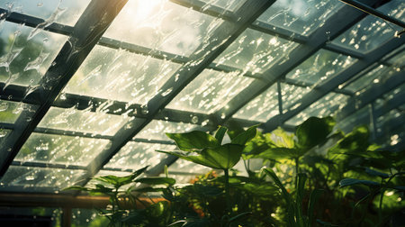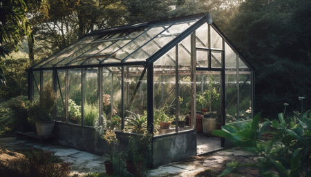Organic growth thrives in modern greenhouse, beauty in nature preserved generated by artificial intelligence