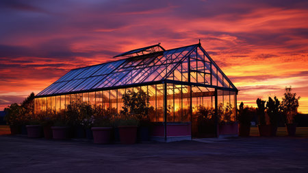 Sunrise Over a Greenhouse Exterior: Tranquility and Growth for Design and Inspiration
