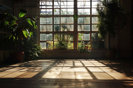 Sunlight streaming through a large window, casting long shadows on the studio floor AI generated