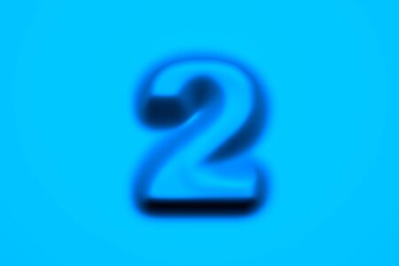 Blue wax or plastic alphabet - number 2 isolated on light blue background, 3D illustration of symbols