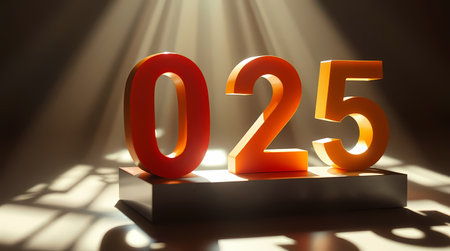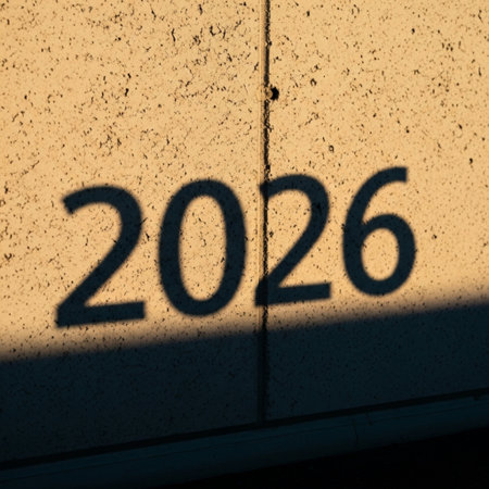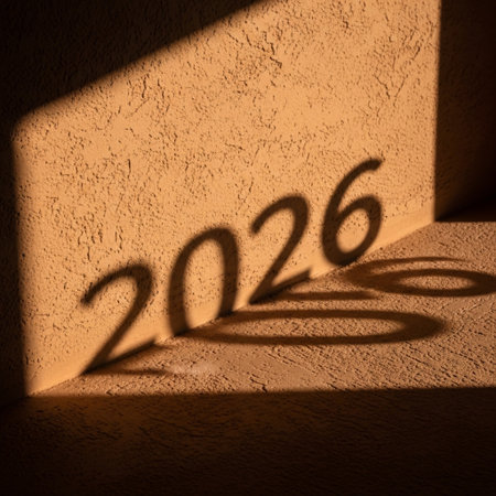 Three dimensional white numbers spelling out 2026 are displayed on a textured surface with striped shadows cast across them.