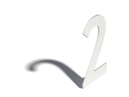 Drop shadow digit. Number TWO 2. 3D render illustration isolated on white background