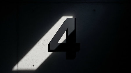 A large number four is highlighted by a beam of light against a dark background.