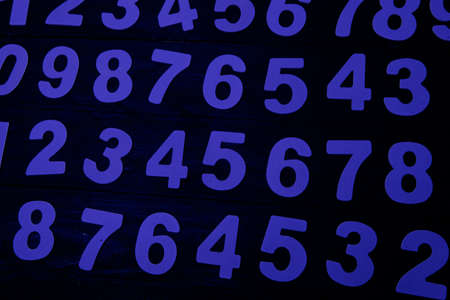 Background of numbers on a black wooden wall. Selective focus. Toned.