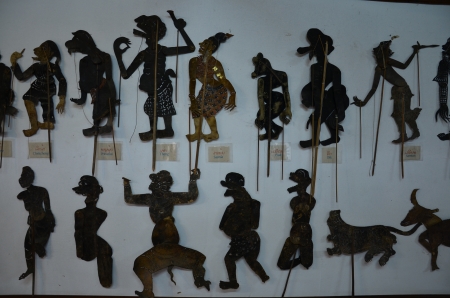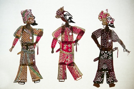 wayang kulit or shadow puppets from Java, Indonesia puppet show by dalang or puppeteer . Wayang made from leather