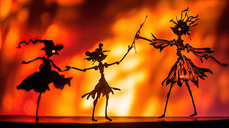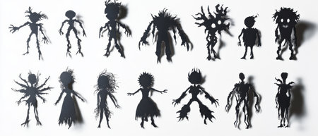 A stunning collection of flickering shadow puppets captured in a studio setting. Perfect for posters, illustrations, and advertising campaigns.