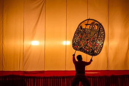 Taipei, Taiwan - OCT 06, 2015: shadow puppetry play in Puppetry Art Center of Taipei.a type of opera using cloth puppets that originated during the 17th century in China.
