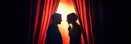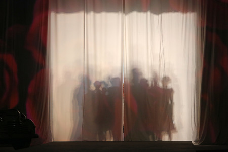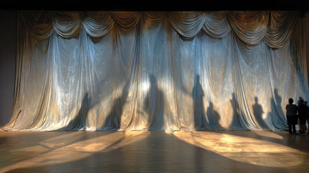 Velvet theatre curtain with shadow play creating a sense of suspense