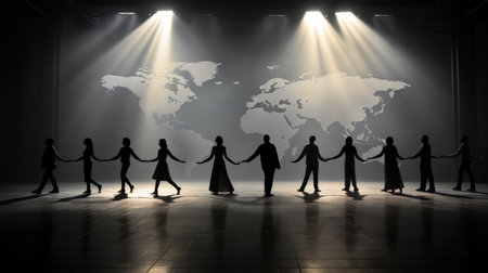 Group of diverse silhouettes of people standing together in unity, symbolizing inclusivity and diversity, social justice campaign