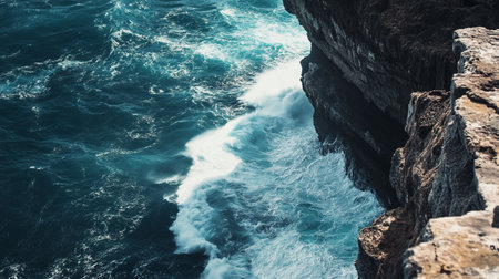 AI Generated. Aerial View of Rugged Cliff Face Overlooking the Ocean
