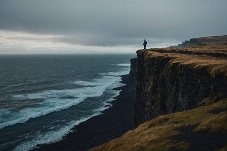 Stormy Contemplation: Emotional Reflection on a Rugged Cliff
