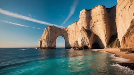 AI Generated. Stunning Seaside Cliffs and Natural Rock Arch in the Middle of a Pristine Ocean
