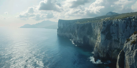 AI Generated. Dramatic rocky cliffs overlooking a serene turquoise sea