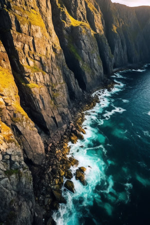 AI Generated. Aerial View of Cliffs on the Coast of Ireland