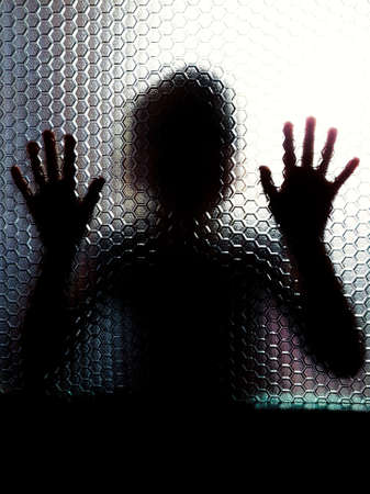 Shadowy figure behind glass