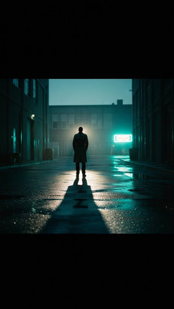 Mysterious silhouette of a man standing in the middle of a dark street