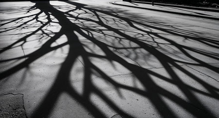 Intriguing shadows cast on a paved pathway, and captivating interplay of light and darkness.