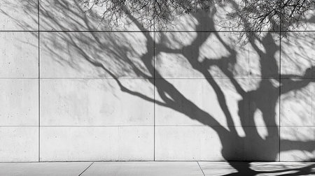 Cement studio room background with branch shadows on the wall. Mockup for branding products, presentation.