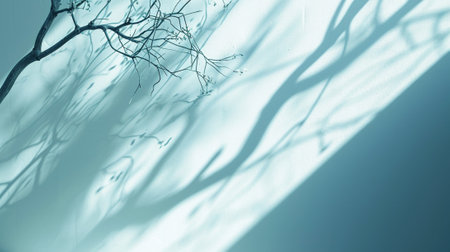 Serene pale green wall with leaf shadows for calm and relaxation themes