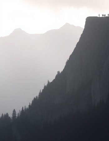 Captivating View: Delighted People Admiring Majestic Cliff from a Unique Angle --ar 3:2