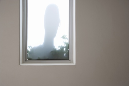 Silhouette through frosted glass. The ghost behind the frosted glass, Halloween holiday.