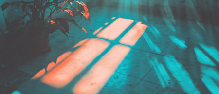 Vibrant sun rays overlay creating serene textures on surfaces with warm and cool tones