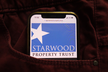 KONSKIE, POLAND - January 15, 2022: Starwood Property Trust logo displayed on mobile phone hidden in jeans pocket