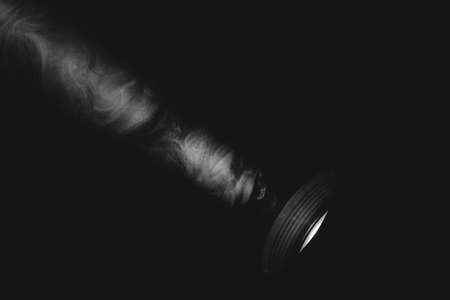 Shallow depth of field (selective focus) image with smoke and dust in the light of a stage reflector.