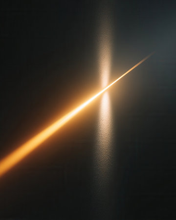 Golden light beam cutting through a dark space, abstract concept of direction, focus, and progress.