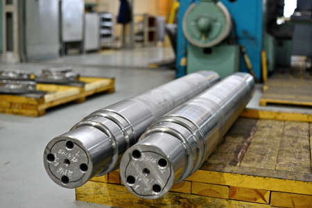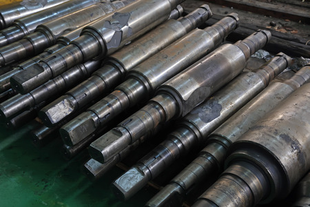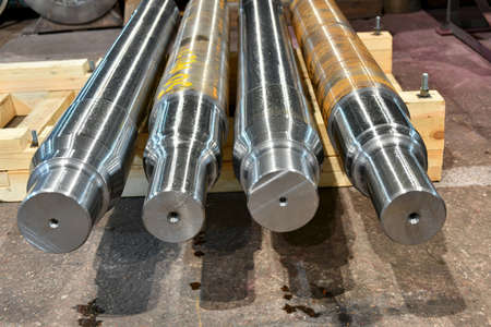The shaft after turning on the rack in the workshop.
