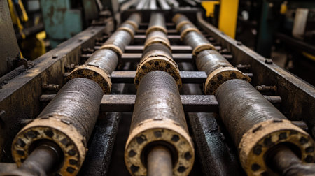 Discover the intricate details of industrial machinery with this close-up image, highlighting mechanical components in an energy-rich manufacturing setting.