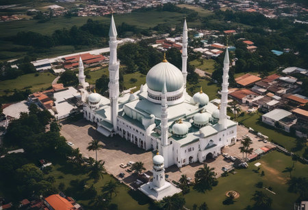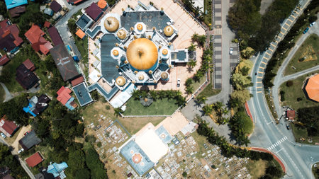 Aerial top view of the Ubudiah Mosque at Kuala Kangsar, Perak, Malaysia