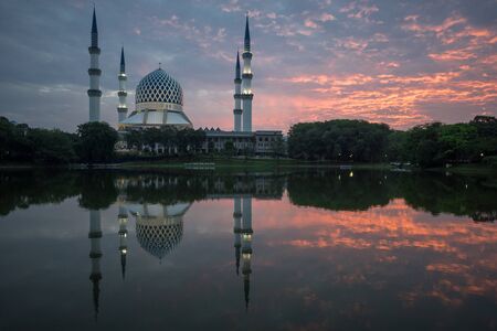 Beautiful landscape of a mosque in Shah Alam Selangor at dawn