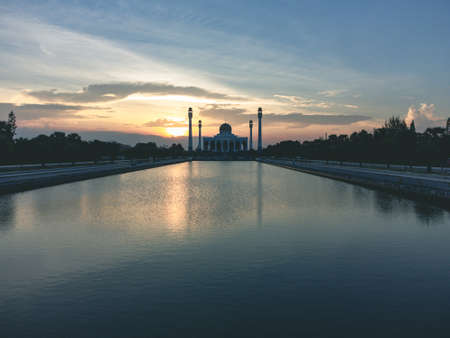Landscape of beautiful sunset sky at Central Mosque in Songkhla province, Southern of Thailand.