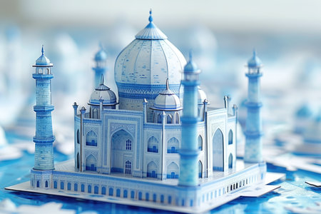 The iconic Taj Mahal is beautifully reflected in the calm waters.